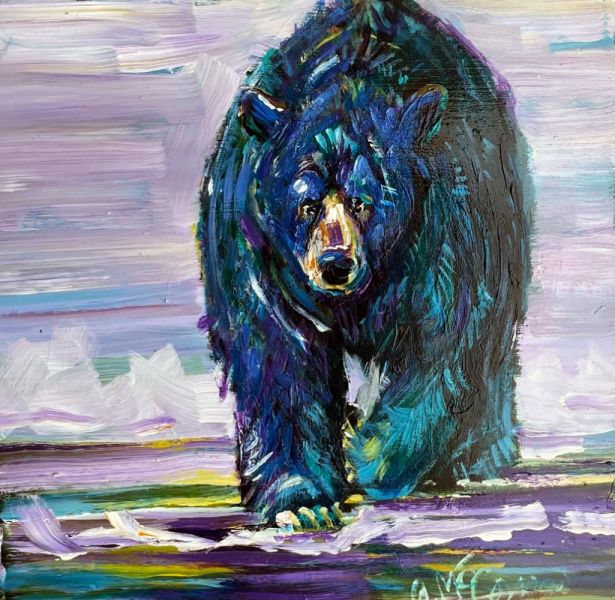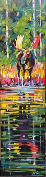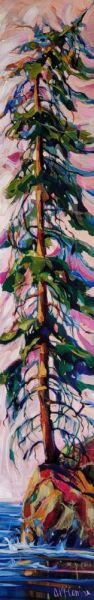 I see my work as a statement about our world today, a world that is more complex than the 1920’s world of the Group of Seven. In some way celebrating the natural landscape seems even more important now than it was then. My landscapes are filled with shapes that have overlapping colors (no subtle shading). I use bold, thick brushstrokes or pallet knife with only selected spaces for the eyes to rest. My work is a celebration of the natural world while at the same time reflecting our world today, where it is hard for any one thing to hold out attention for long. There is tension. Movement. Colors bumping against each other. Complexity.