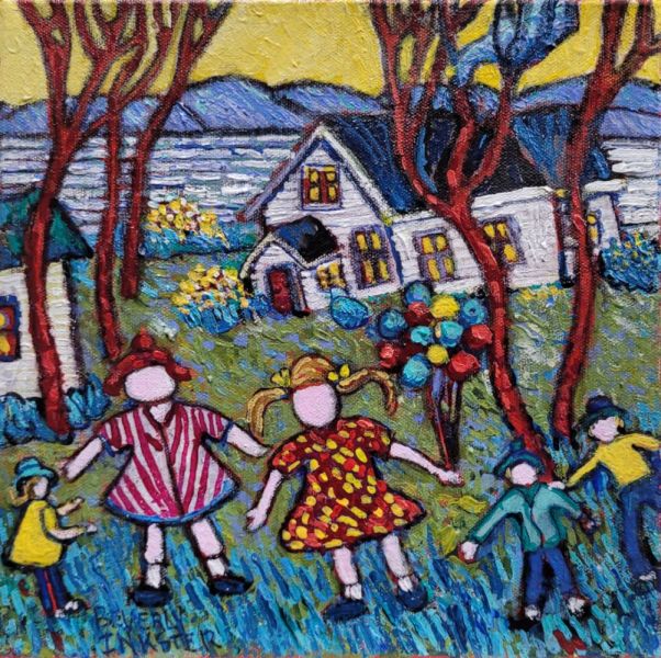 Now that my six children are grown I am once again able to express through art my observations and thoughts and love of the beautiful land in which I am fortunate to live. I also enjoy introducing animation into buildings and uniting them with the vitality of nature surrounding them. To do this I combine colour and curvature in a whimsical blend representing movement and life. I hope that those who experience my art will derive as much pleasure from it as I have in creating it.