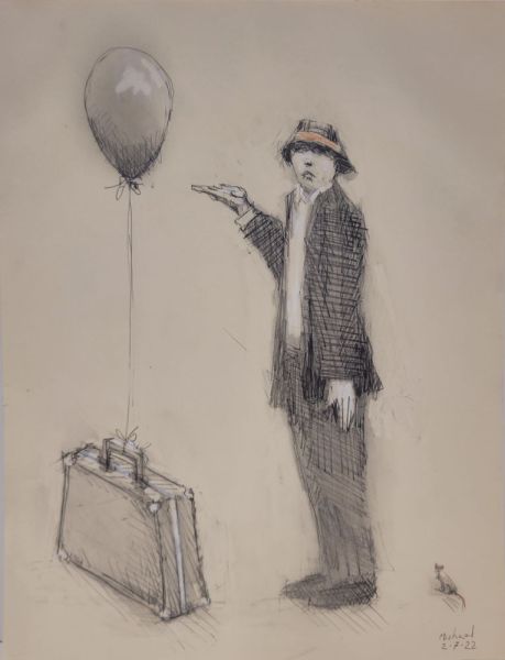 It has taken two repeated elements in my work and developed meaning for me. The suitcase aka the Baggage Handler and the balloon, unsurprisingly from the “Balloonist”
