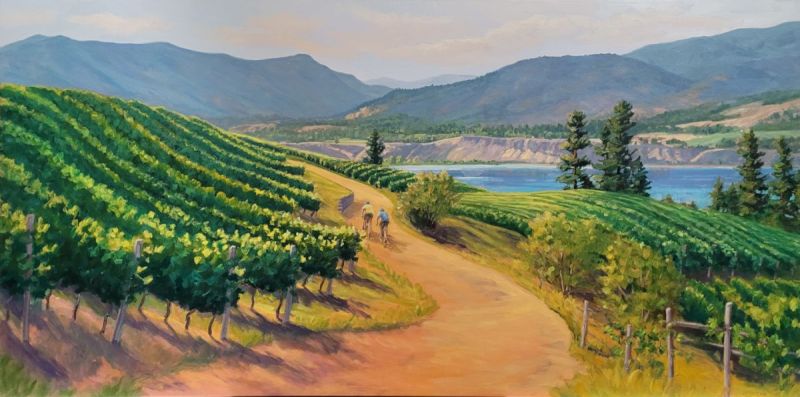 Robyn had her first solo exhibition of watercolours in Penticton 1996. Since then she has moved to painting with oils and acrylics and has continued to develop her representational style, varying her subjects from intimate close up views of flowers and fruit, to panoramic views of the landscape.
