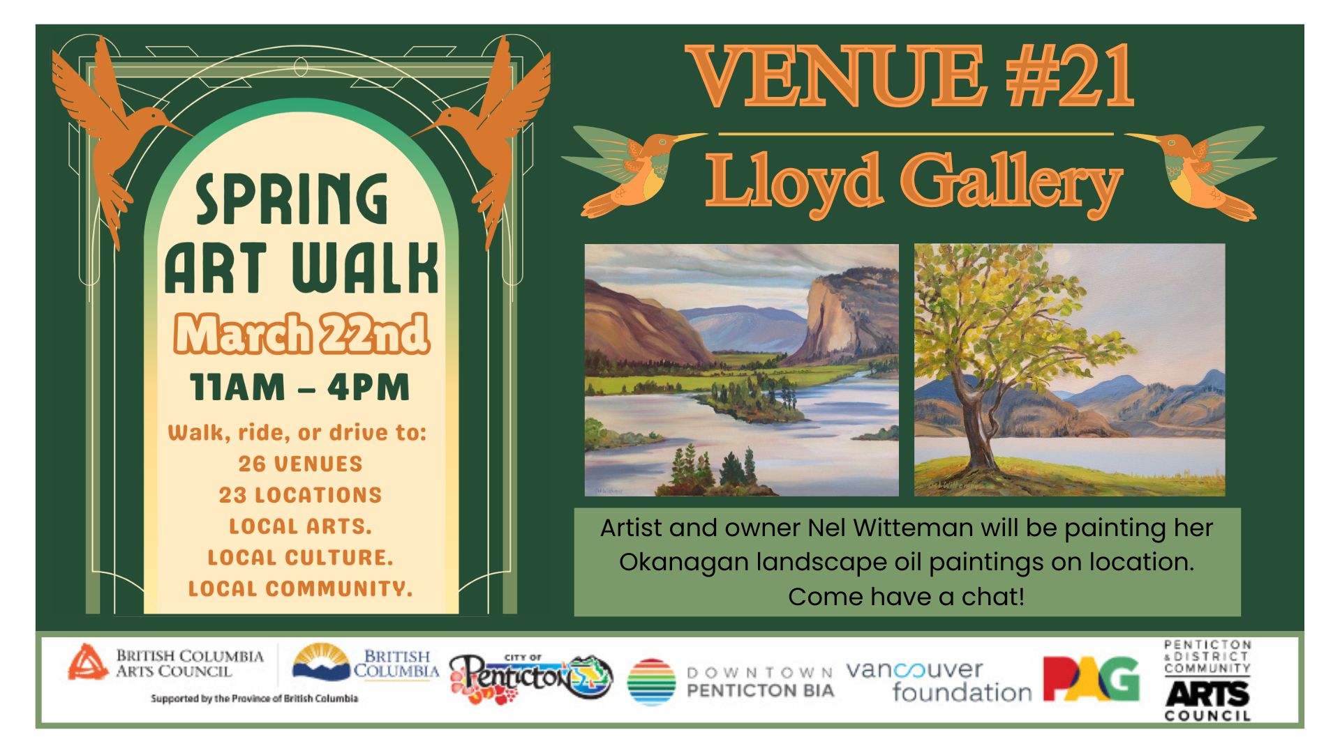 At almost a half-century, the Lloyd Gallery has become a staple in the Penticton community, and we are proud and thankful to still be here today! To celebrate, we have named our group show "Perspectives" to portray all the different people, artists, styles and artwork that we have been priviliged to host over the years. The official show opening (and evening party) will take place Thursday, May 22nd 2025 from 5 - 8PM. Hope to see you there!